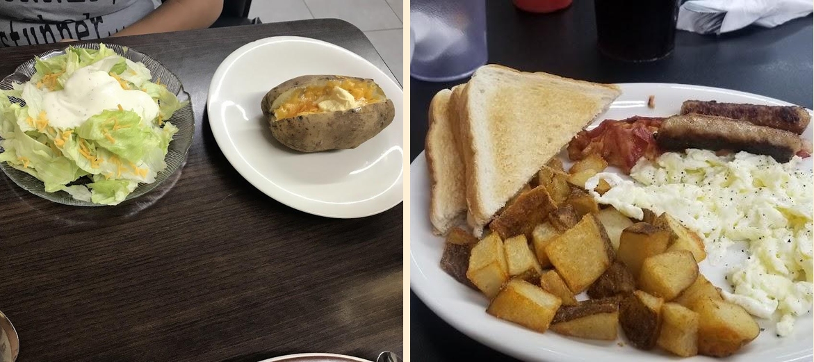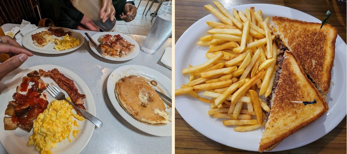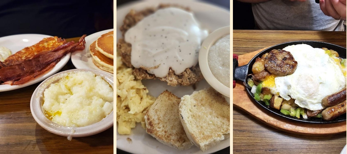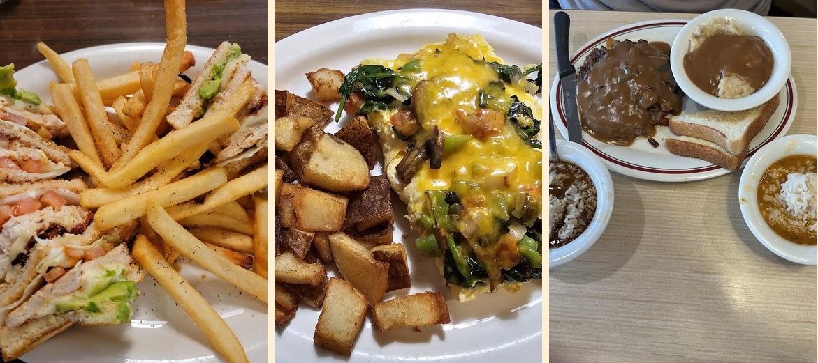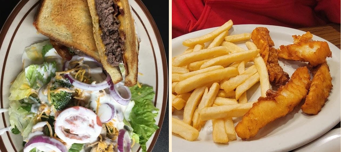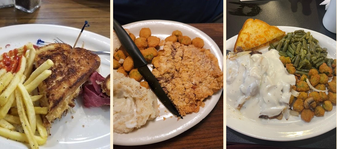 You must try the Southern Fried Chicken Salad and the Mushroom Garlic Burger. The French Toast Combo is great too. Don’t miss the breakfast favorites like Chicken Fried Steak & Eggs.